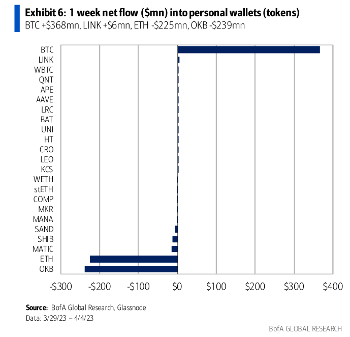 Bitcoin net outflows were the second largest of the year, following the prior week's largest outflow of the year. That means that a large amount of BTC was withdrawn from exchanges into other wallets, such as cold storage.