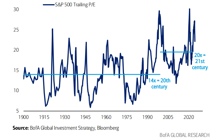 Assuming $250 in 12-month forward EPS, the fair value for the S&P500 in a shallow recession around 4800 (P/E ~19x-20x) is where one can consider adding risk.