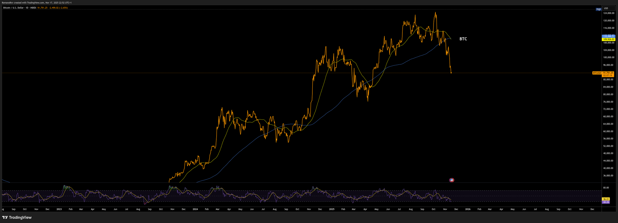 However, I see Bitcoin RSI low being at oversold territory. But that's one nasty death cross on the 200 day and 50-day moving average