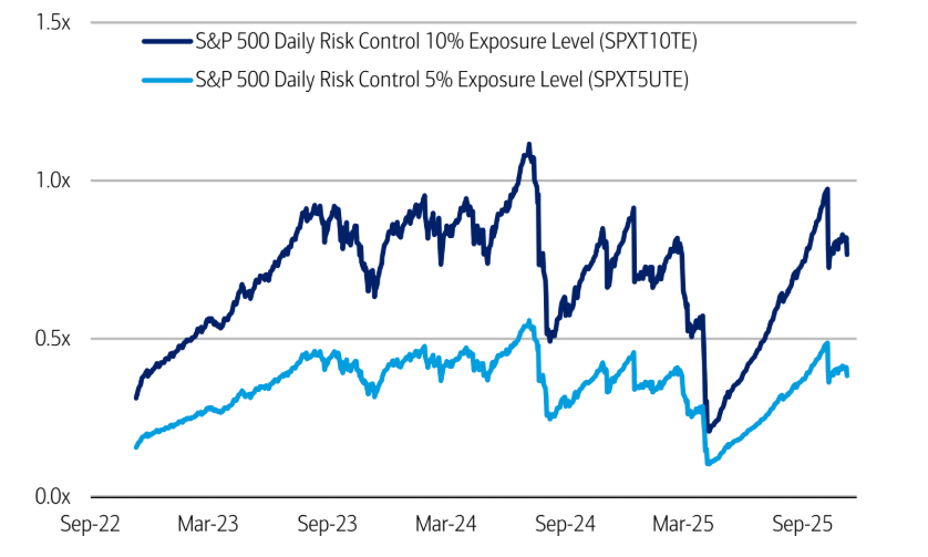 Into November, the suppressive effects deepen again with -2 to -3 vol points while realized vol falls into the low.
