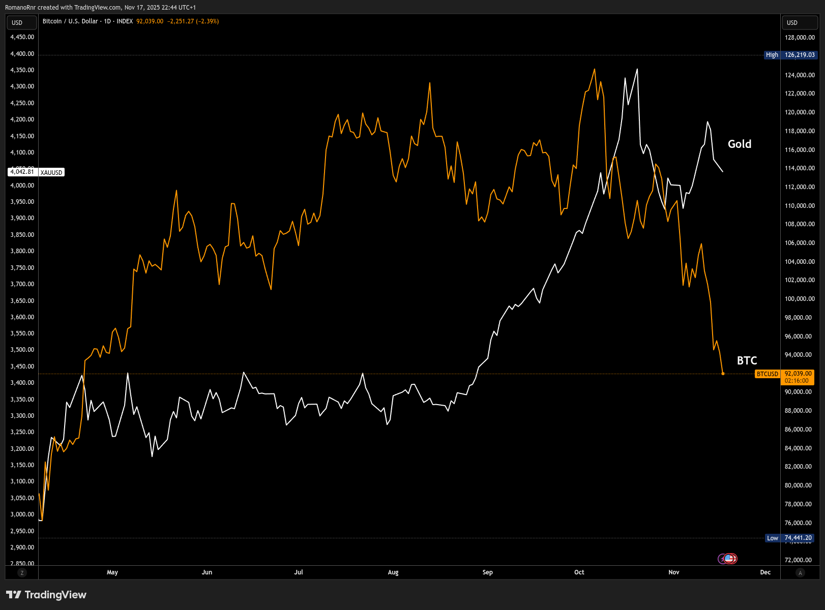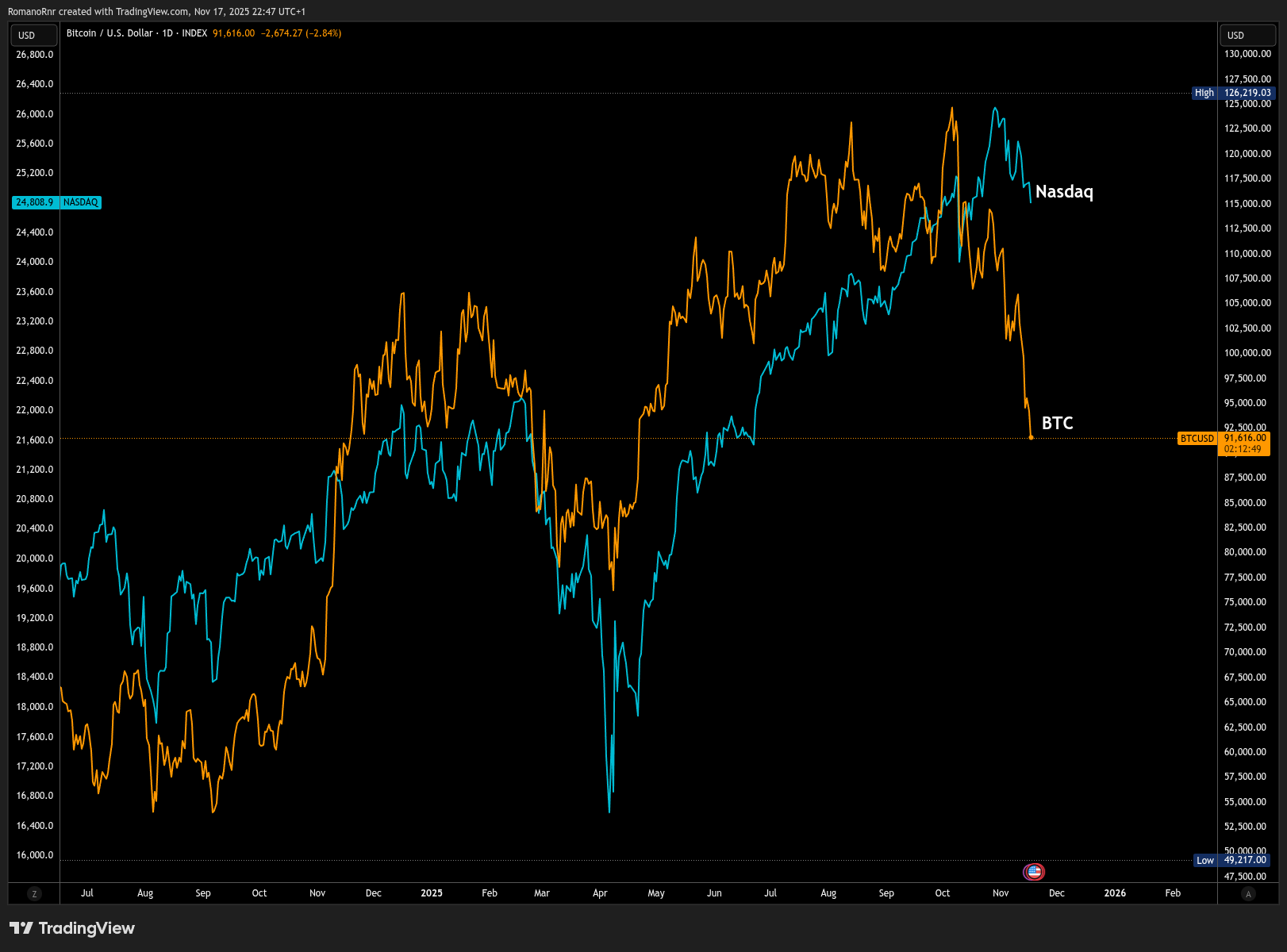 This also looks uncomfortable. Does Nasdaq has to follow? No. I do know these assets are correlated. Nasdaq still priced too high? Or Bitcoin priced too low?