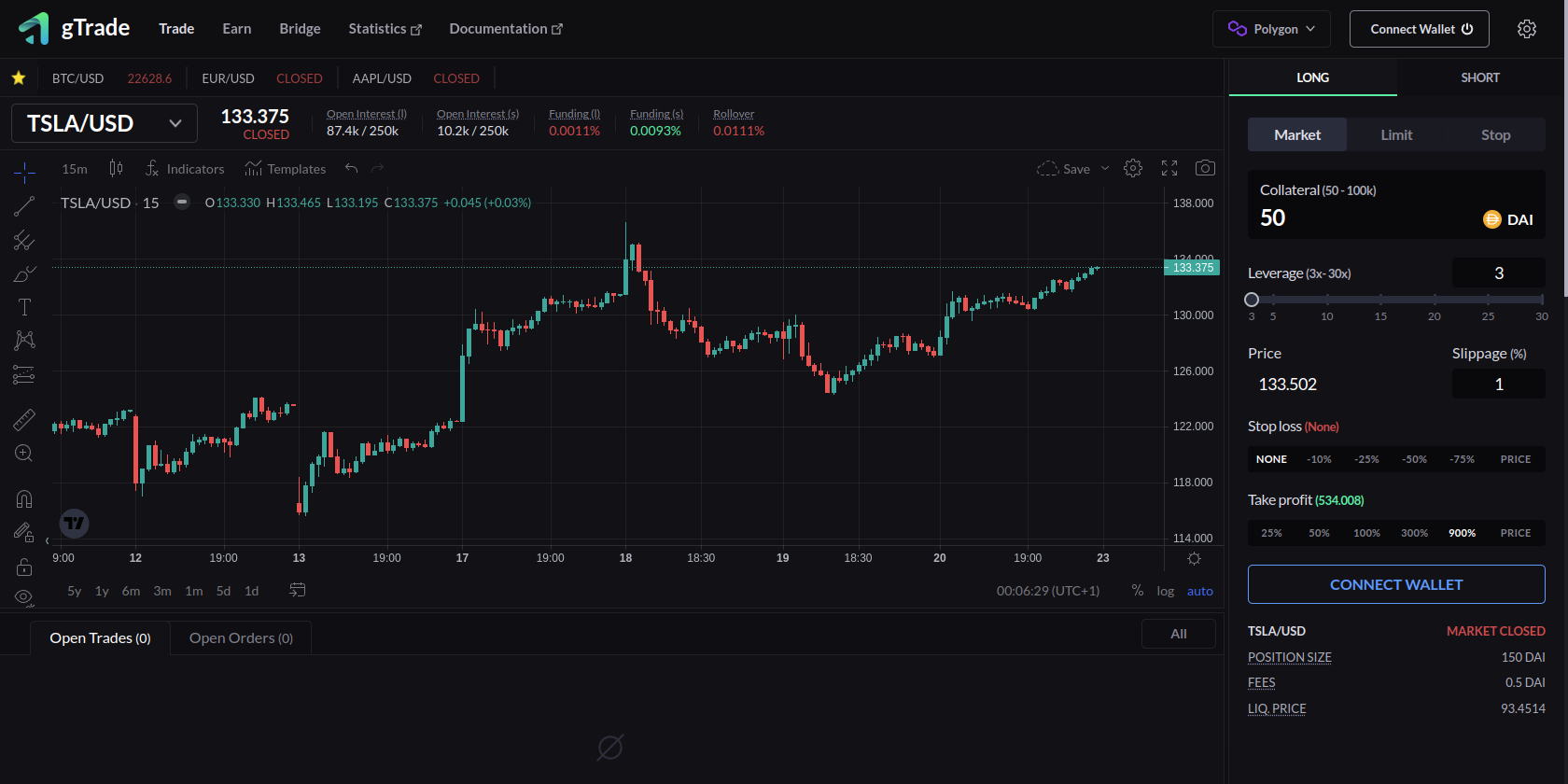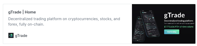 I've noticed this interesting DEX. So gTrade has a really nice UI but also has forex and stocks. I am still playing with the DEX. I recommend using the Polygon network to trade on the.