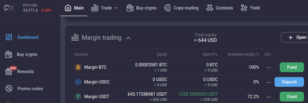The minimum deposit is about $10, and no KYC is required. PrimeXBT users can buy Bitcoin, USDT, and USDC using a credit card in the client dashboard.