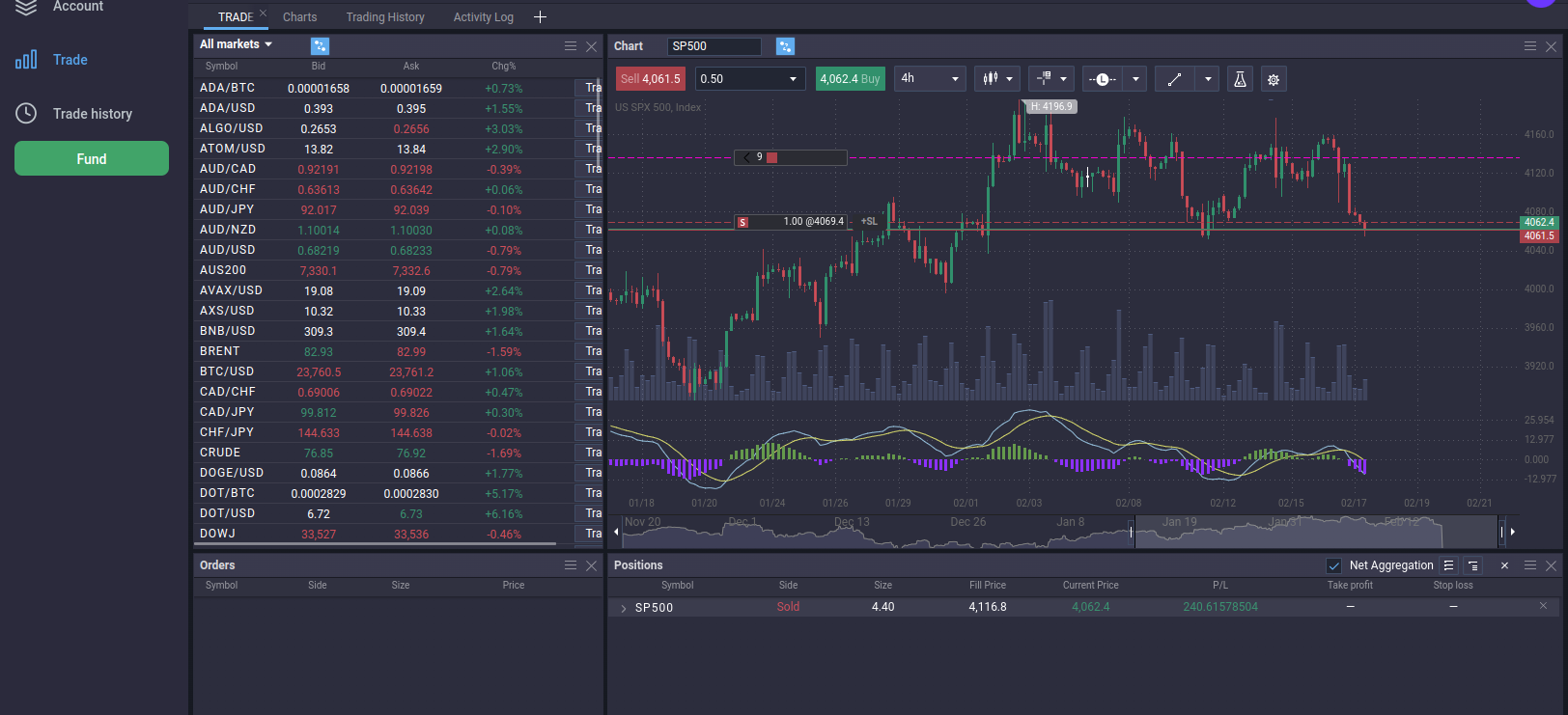 I have been using PrimeXBT to test out, as I've been looking for a broker to trade the SPX500, Forex, and commodities.