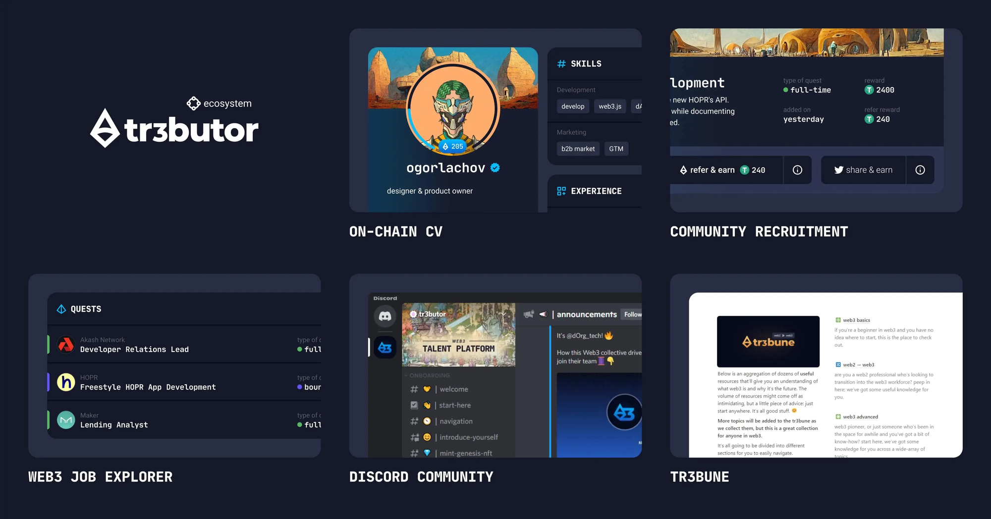 It seeks to foster a vibrant talent community in collaboration with the most influential entities in Web3. This is because there are billions currently locked up in companies and DAOs that need to be funded and many aspiring Web3 contributors that need a clear path for them to take. tr3butor is the solution for this problem as it efficiently matches organizations and talent to help build and facilitate the contributor economy.
