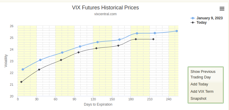 The VIX term structure is a chart that illustrates the relationship between the VIX (volatility index) and the prices of options related to the S&P 500 Index.