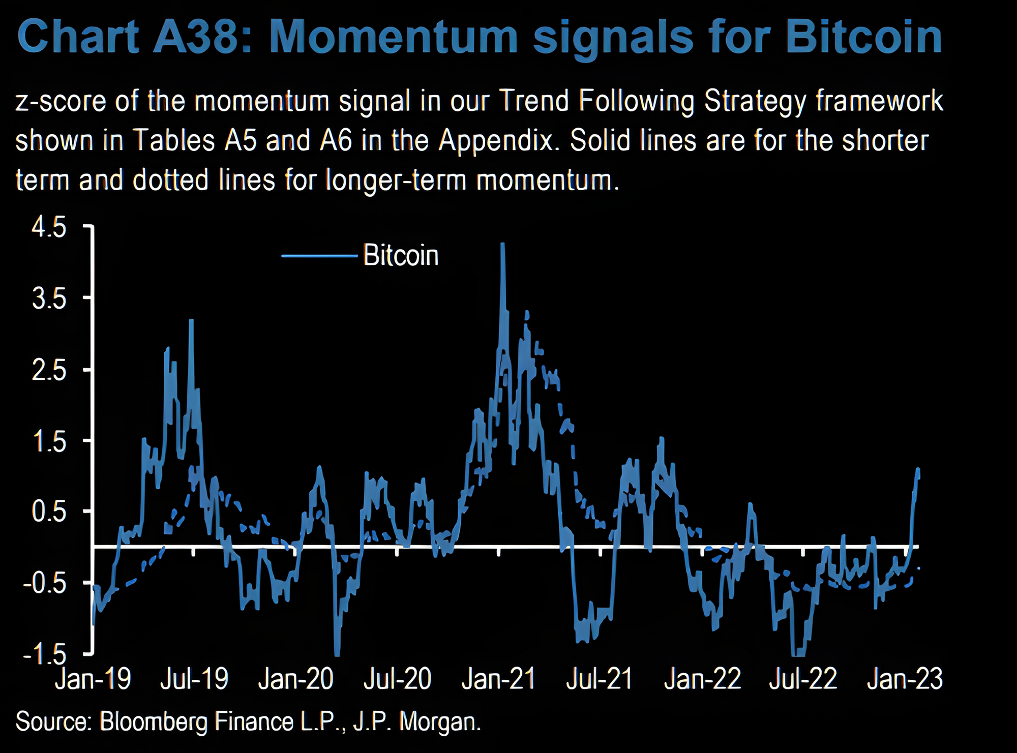 JP Morgan Bitcoin momentum signal z-score of their trend following strategy