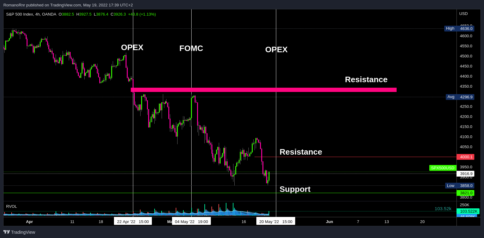 The market is likely to rebound to the 4000 level around Friday's expiration, as there is significant resistance at that level.